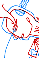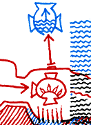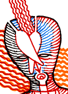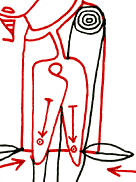 Lieblingspfeil Nr. 527 Zwei Pfeilkonzepte kombiniert Als würde über das, von den roten Linien aufgespannte, Dreieck eine Drachenhaut gespannt... herbstliche Assoziation zu einem zweifarbigem Pfeil, der auf ein 30 Meter entferntes Restaurant weist. Der Pfeil wirkt so deutlich eleganter, gelenkiger, als der Pfeil mit vollstän- diger Dreiecksspitze, der allein aus der fleischfarbenen Form entstünde und hat deutlich mehr Körper als der Pfeil, der allein aus den roten Linien be- stünde... hier werden also zwei Pfeil- konzepte gewinnbringend zusammen- geführt. |