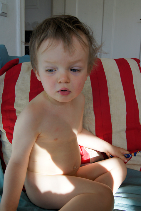 Auch nach dem Anziehen behält H. die beiden Gegenstände fest im Griff.